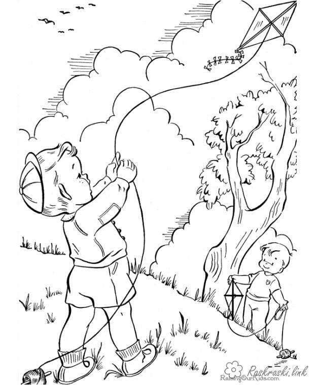 Хлопчик і повітряний змій. Раскраска Свято 1 червня День захисту дітей хлопчик повітряний змій завантажити бесплатно онлайн