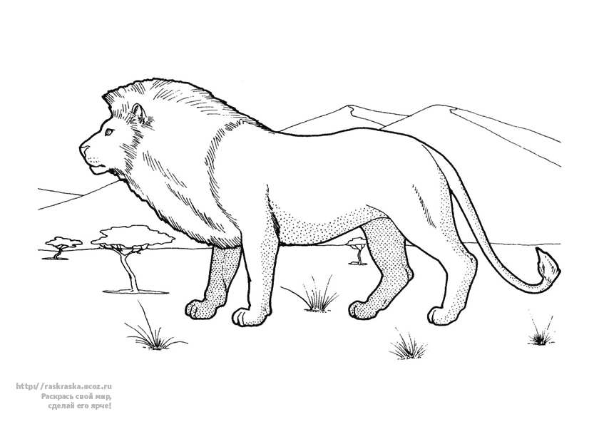 Лев. Раскраска розмальовки для дітей, тварини, Африка, лев завантажити бесплатно онлайн