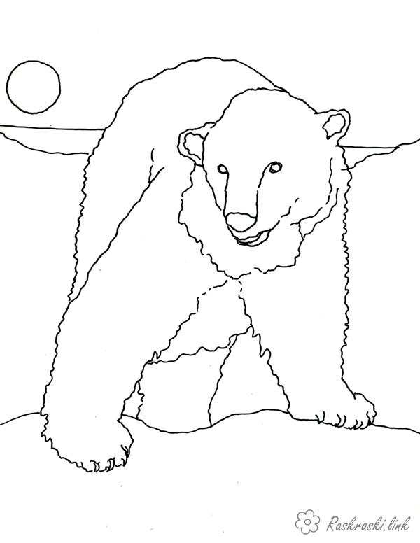 Білий ведмідь. Раскраска розмальовки для дітей, тварини, Антарктида, білий ведмідь завантажити бесплатно онлайн