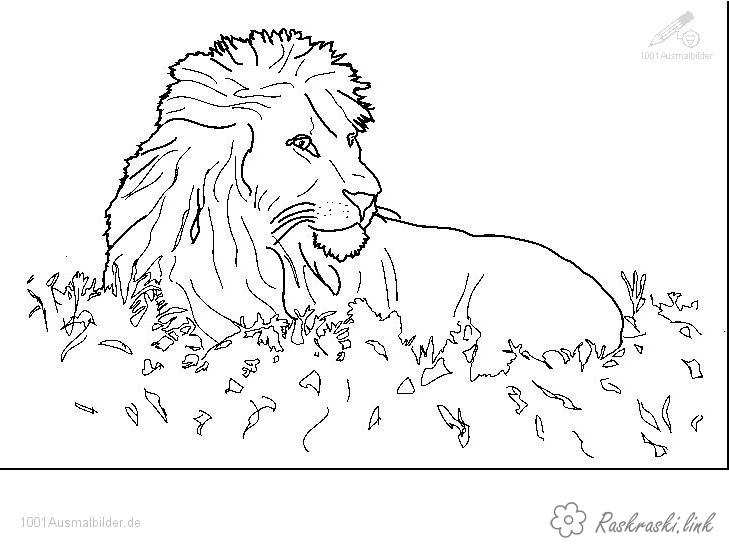 Лев. Раскраска розмальовки для дітей, тварини, Африка, лев завантажити бесплатно онлайн
