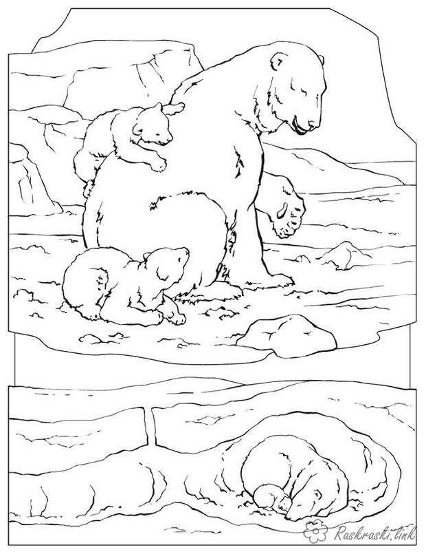 Білі ведмеді. Раскраска розмальовки для дітей, тварини, Антарктида, білий ведмідь завантажити бесплатно онлайн