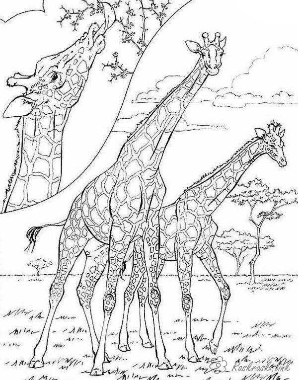 Жирафи. Раскраска розмальовки для дітей, тварини, Африка, жираф завантажити бесплатно онлайн