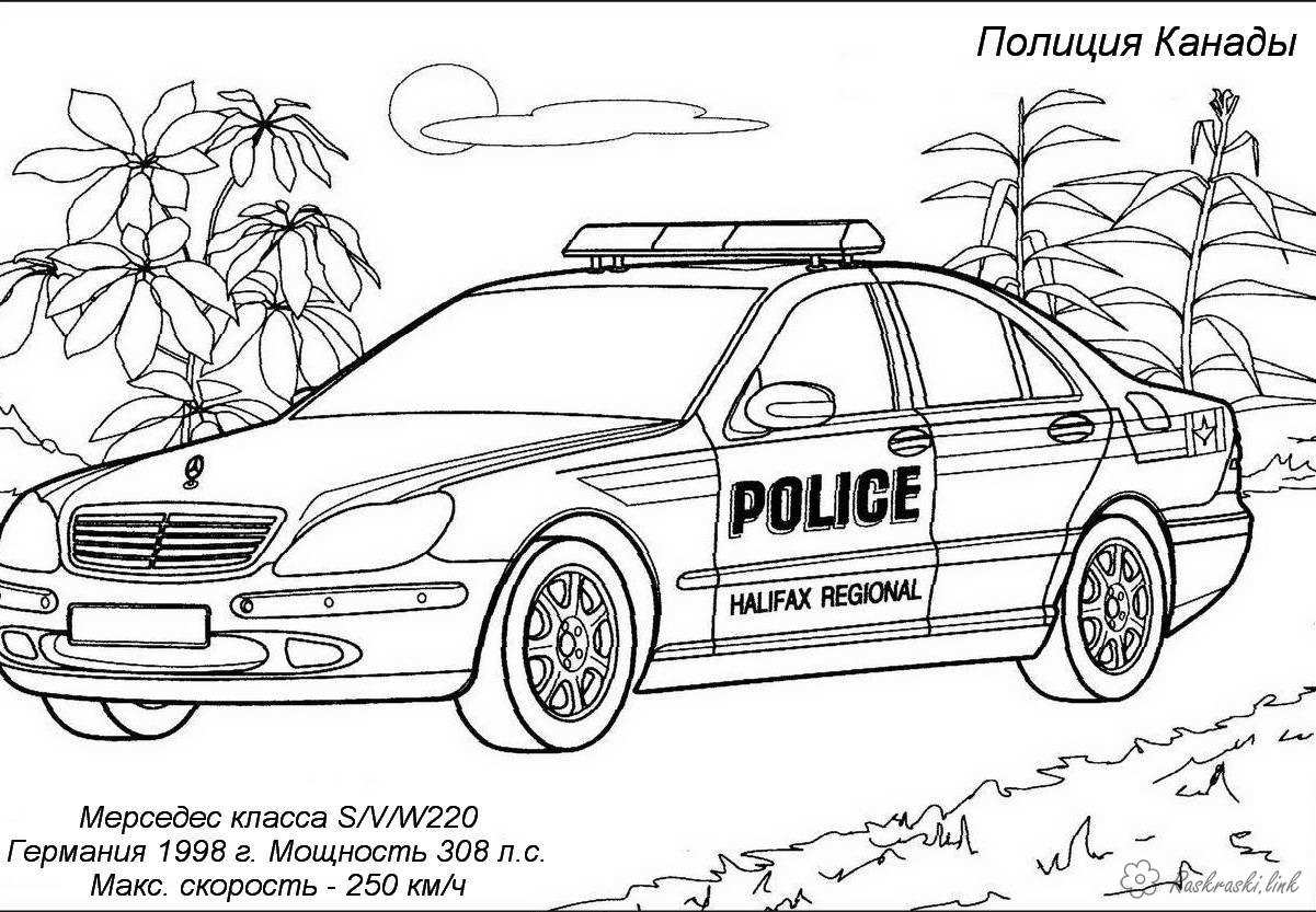 Розмальовка "Машини Поліції". Раскраска розфарбування машини поліції Канади завантажити бесплатно онлайн
