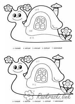 Розфарбуй равлика. Математична розфарбування. Раскраска Порахуй і розфарбуй, розмальовки для дошкільника математичні завантажити бесплатно онлайн