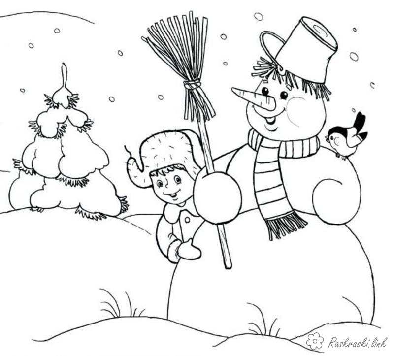 Хлопчик зліпив сніговика. Раскраска хлопчик, сніговик, зима завантажити бесплатно онлайн