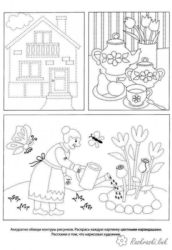 Будинок, посуд, бабуся поливає квіти. Раскраска домалюй і розфарбуй, бабуся, квіти, будинок, посуд завантажити бесплатно онлайн