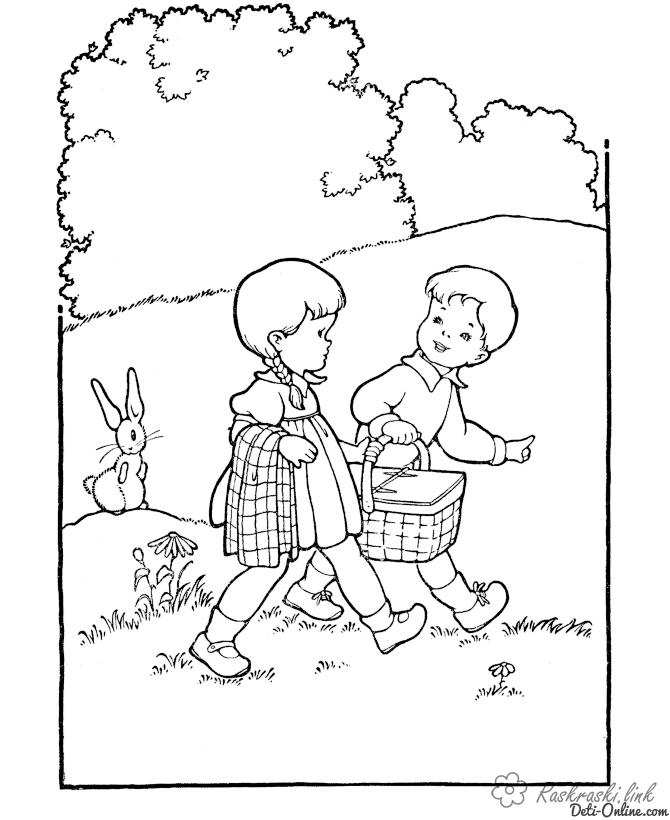розфарбування похід в ліс. Раскраска розфарбування літо ліс похід хлопчик дівчинка завантажити бесплатно онлайн