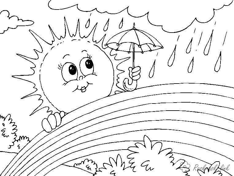 розфарбування літній дощик. Раскраска розфарбування літо дощик сонечко парасольку веселка завантажити бесплатно онлайн