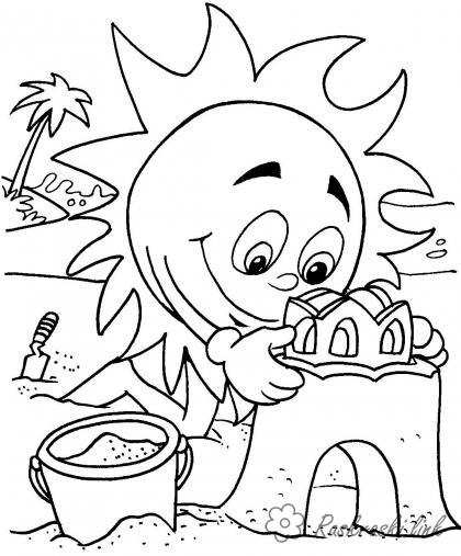 розфарбування сонечко на пляжі. Раскраска розфарбування пляж сонечко лопатка пальми корона завантажити бесплатно онлайн