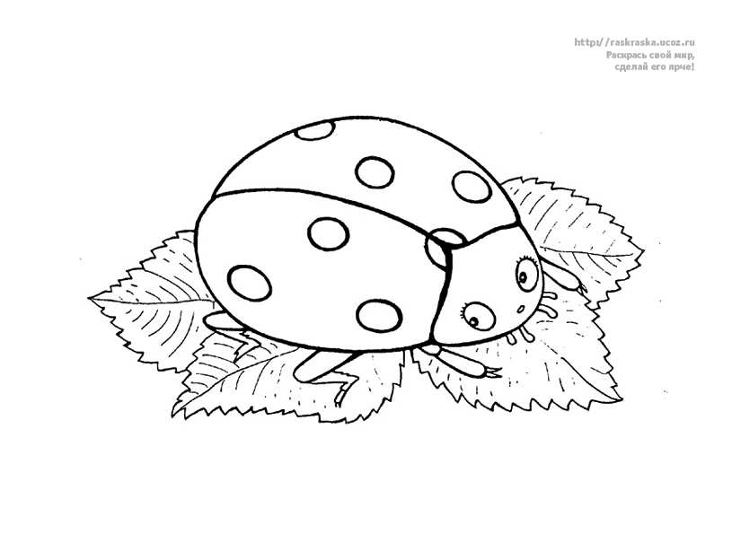 Божья коровка. Раскраска детские раскраски, насекомые, божья коровка на листочке завантажити бесплатно онлайн