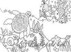 черепаха і рибка в море. Раскраска природа підводний світ черепаха рибка море завантажити бесплатно онлайн
