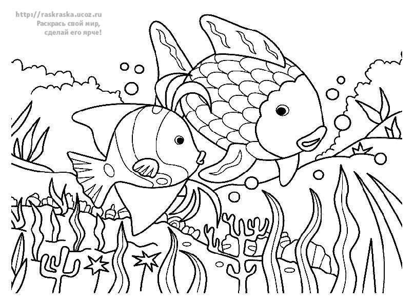 рибки в морі. Раскраска природа підводний світ риба рибки море завантажити бесплатно онлайн