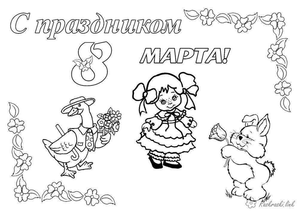 8 березня свято . Раскраска розфарбування листівка на 8 березня завантажити бесплатно онлайн