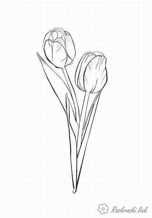 тюльпани. Раскраска розмальовки з тюльпанами завантажити бесплатно онлайн
