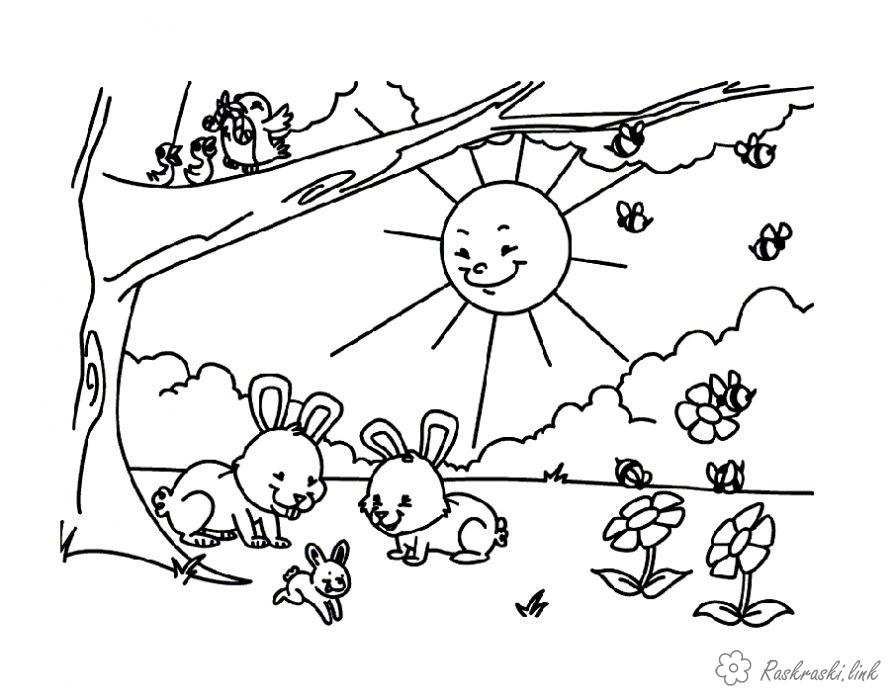 Прийшла весна. Раскраска Розмальовка прийшла весна, сонце світить на галявину завантажити бесплатно онлайн