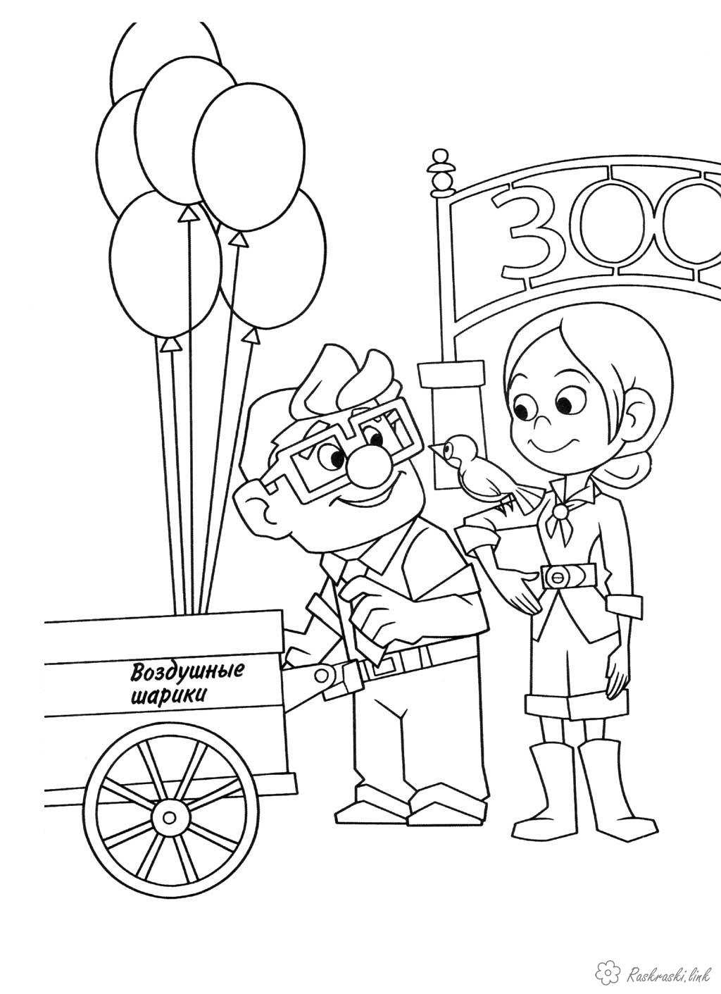 Розмальовка Карл і Еллі продають кульки. Раскраска Мультфільм, Вгору, Карл, Еллі, кульки, продають завантажити бесплатно онлайн