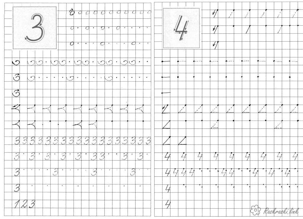 пропис цифр 3 і 4. Раскраска розфарбування, пропис для дітей завантажити бесплатно онлайн