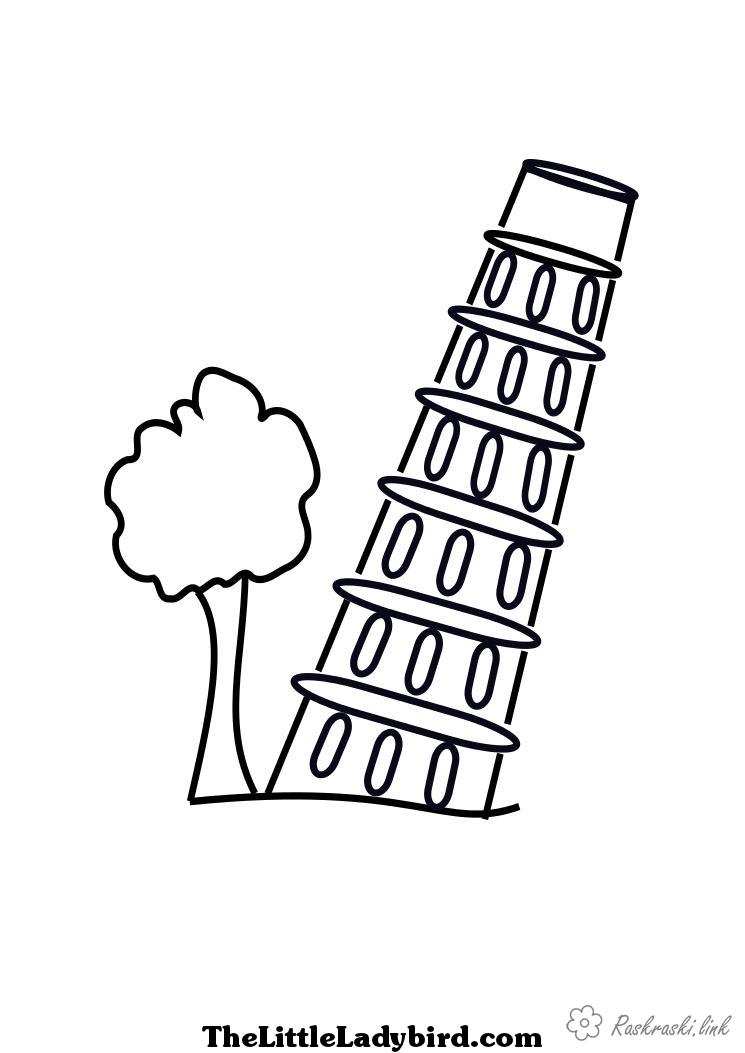 Пізанська вежа. Раскраска розмальовки для дітей, вежа завантажити бесплатно онлайн