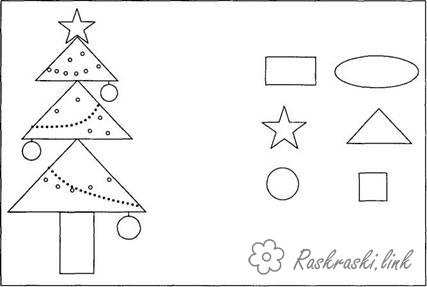 Ялинка з геометричних фігур. Раскраска Еліпс трикутник зірка прямокутник квадрат розфарбування з геометричних фігур завантажити бесплатно онлайн