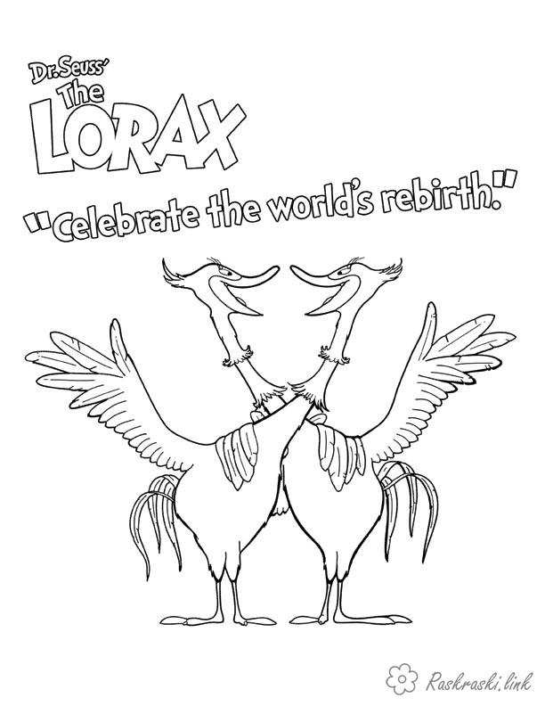 Птахи з лісу Лоракса. Раскраска Лоракс, розфарбування ,, птиці, ліс завантажити бесплатно онлайн