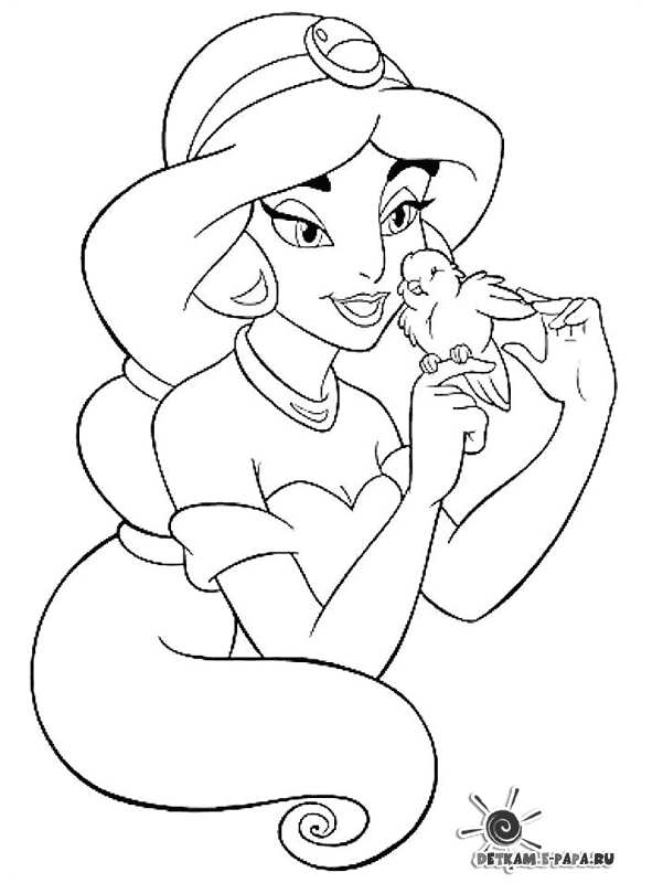 Жасмин. Раскраска жасмин, розмальовки, розмальовки з мультфільмів, пташка, коса завантажити бесплатно онлайн