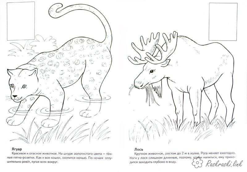 Ягуар і лось. Раскраска розмальовки для дітей, тварини, Північна Америка, ягуар, лось завантажити бесплатно онлайн