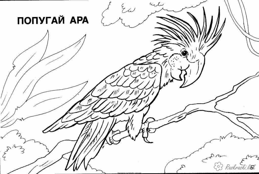 Папуга Ара. Раскраска розмальовки для дітей, тварини, Північна Америка, папуга завантажити бесплатно онлайн