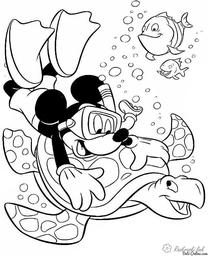 розфарбування для дітей "Підводний світ". Раскраска Дитяча розфарбування підводний світ, міки маус під водою завантажити бесплатно онлайн