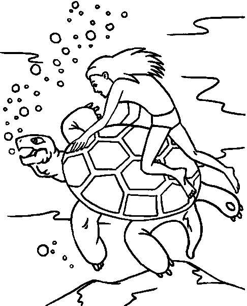 Мауглі під водою на черепасі. Раскраска Мауглі пірнає під водою на черепасі завантажити бесплатно онлайн