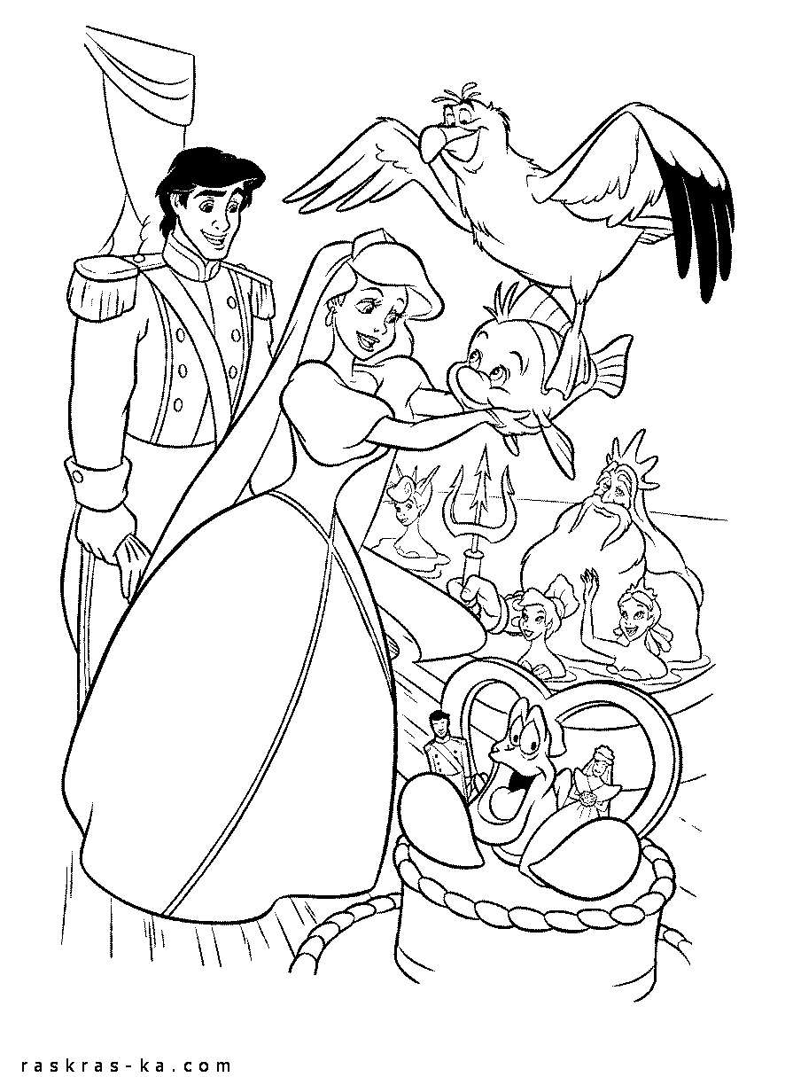 Розмальовки для дітей "Русалонька". Раскраска Дитяча розфарбування по мультфільму "русалочка" завантажити бесплатно онлайн