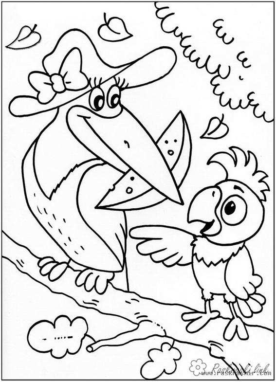 Папуга Кеша. Раскраска Радянський мультфільм, папуга кеша, ворона, пригода, папуга завантажити бесплатно онлайн