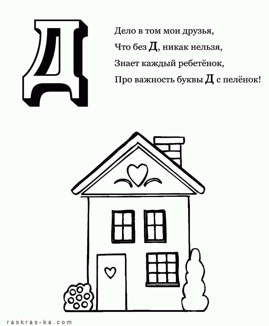 Раскраска-алфавіт "Д". Раскраска Раскраска-алфавіт, розфарбуй букву "Д", будинок завантажити бесплатно онлайн