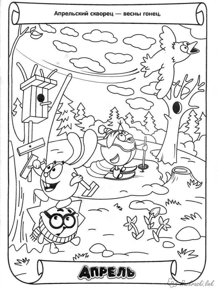 весна со смешариками. Раскраска весна со смешариками, раскраски завантажити бесплатно онлайн