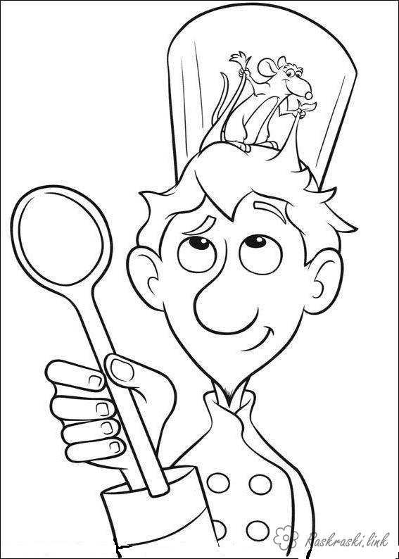 Розмальовка Ремі під ковпаком Лінгвіні. Раскраска Рататуй, щур, кухар, Ремі, Лінгвіні, ковпак завантажити бесплатно онлайн