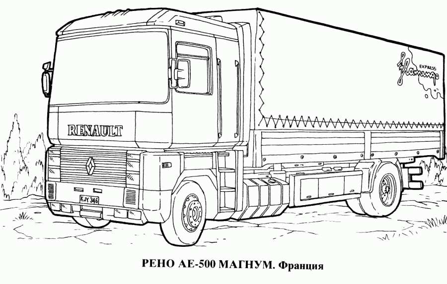 Рено Магнум фура. Раскраска Рено магнум фура розфарбування завантажити бесплатно онлайн