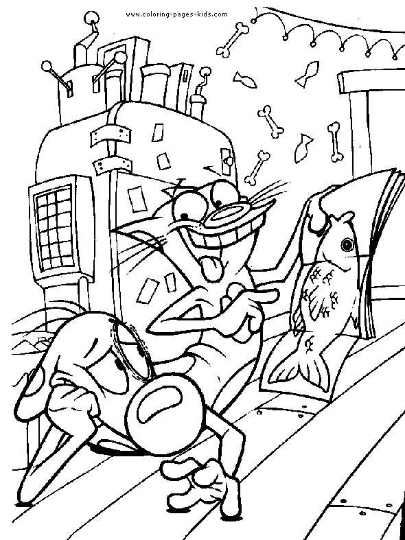 Кот показує псу його улюблену рибу. Раскраска Котопес, розфарбування, кіт, пес, книга, риба, їжа завантажити бесплатно онлайн