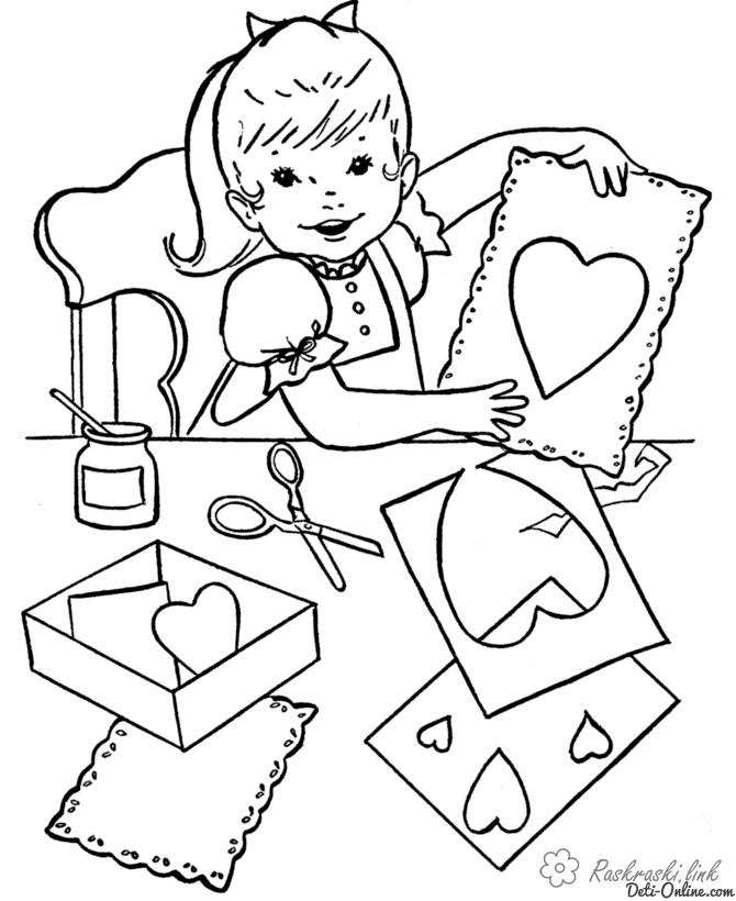 Дівчинка робить апликации. Раскраска Дівчинка, аплікації, сердечка завантажити бесплатно онлайн