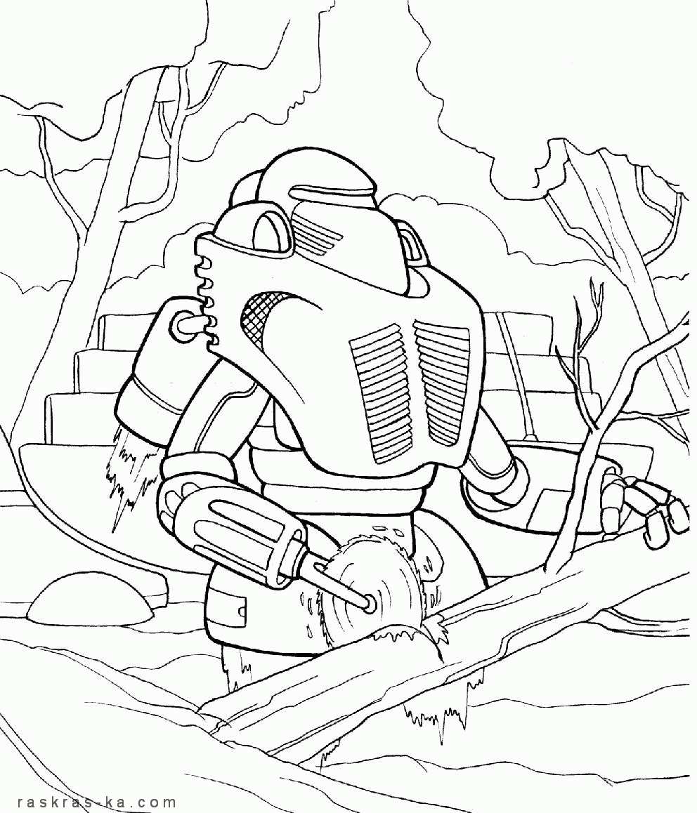 роботи кіборги трансформери. Раскраска робот, пиляє дерево завантажити бесплатно онлайн