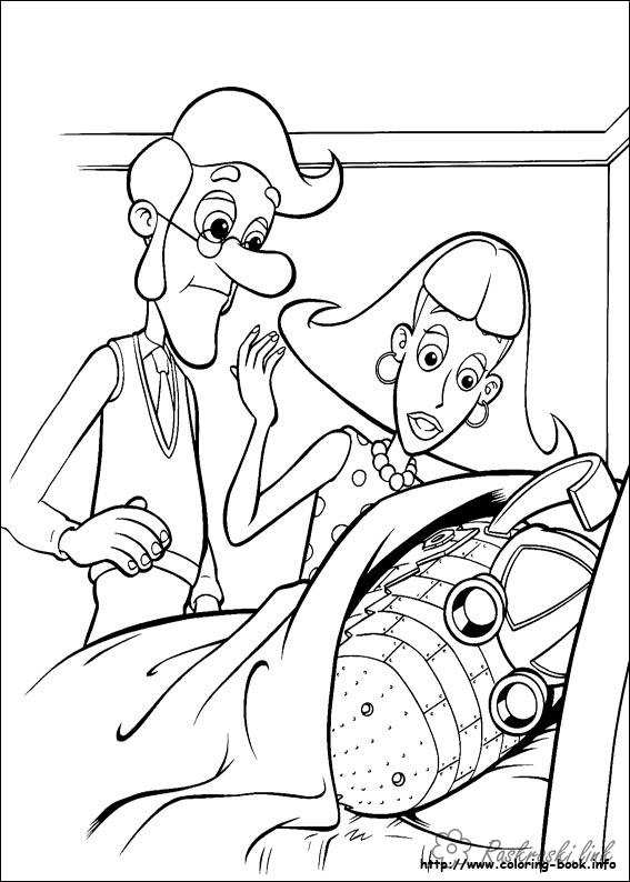 Батьки Джиммі і Годард. Раскраска розмальовки мультфільми, Nickelodeon розмальовки, Джиммі Нейтрон, мама, тато, собака, робот завантажити бесплатно онлайн