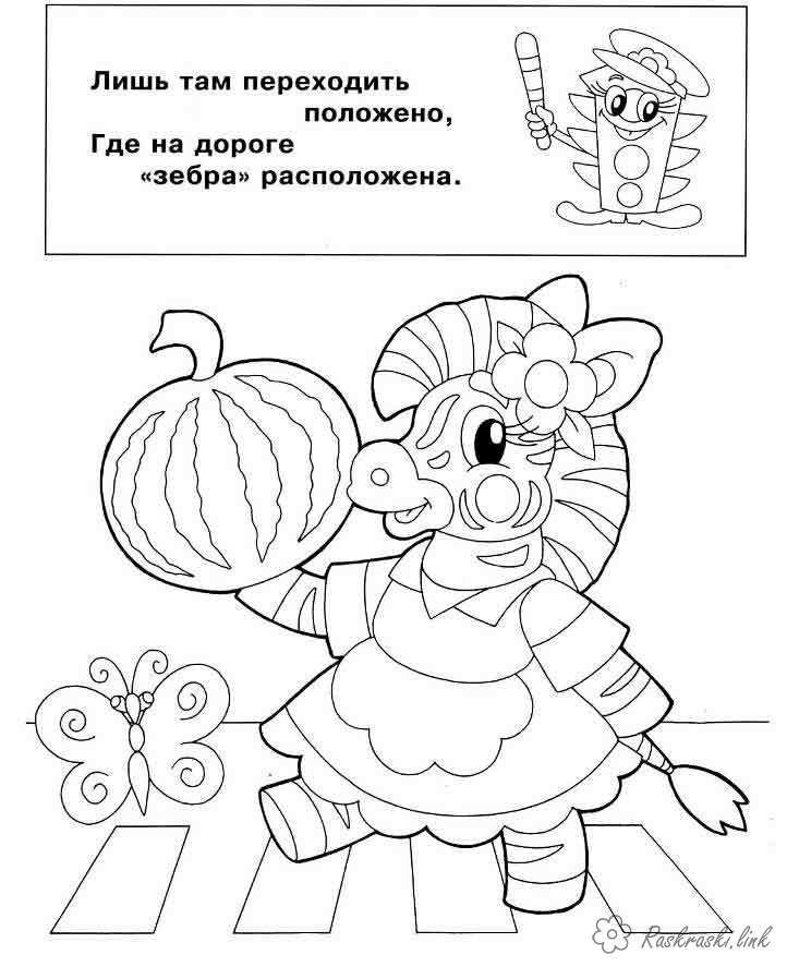Розмальовка "Правила Дорожнього Руху". Раскраска Розмальовка ПДР для дітей. Зебра завантажити бесплатно онлайн