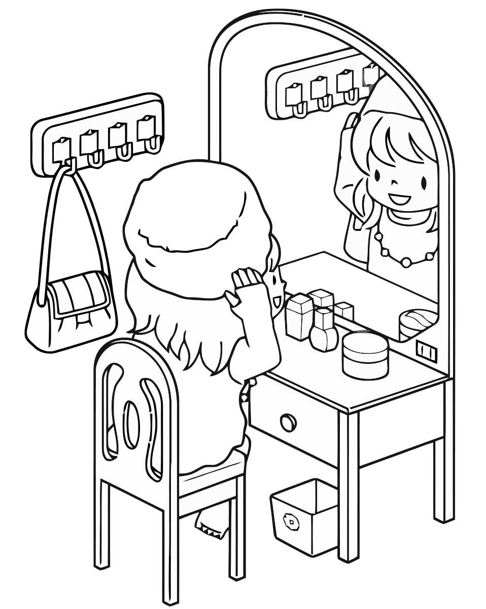 Розмальовка для дівчаток. Раскраска Дитяча розфарбування. дівчинка перед дзеркалом завантажити бесплатно онлайн