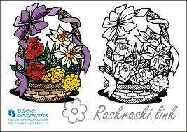 Розмальовка для дітей "Квіти". Раскраска Дитяча розфарбування за кольором, квіти, кошик завантажити бесплатно онлайн