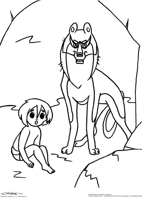 Мауглі і вовк. Раскраска Розмальовка Мауглі і вовк завантажити бесплатно онлайн