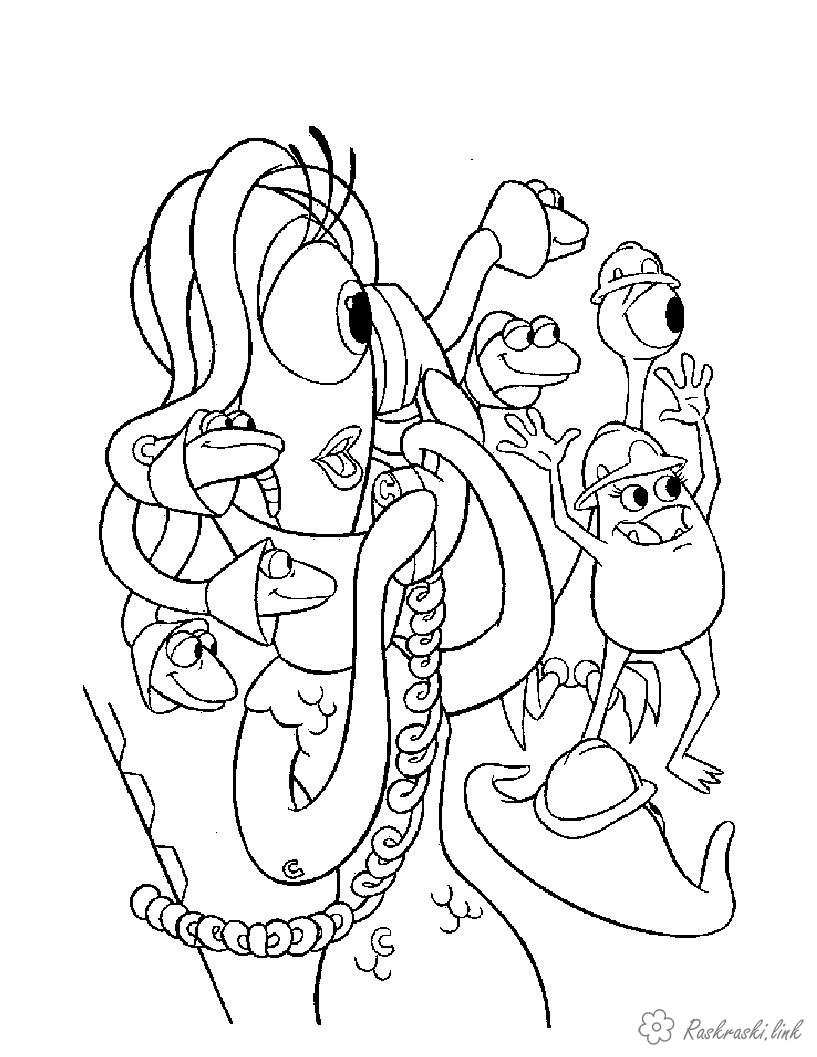 Розмальовка Селія телефонує. Раскраска Корпорація монстрів, монстр, адміністратор, Селія, змії на голові, щупальця завантажити бесплатно онлайн