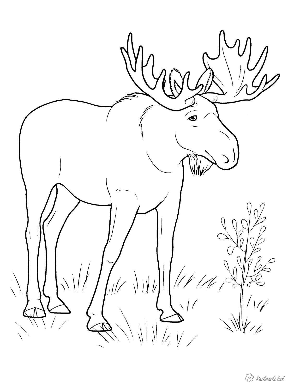 Лось в лісі. Раскраска Розмальовка лось, лісові тварини, дикі тварини, травоїдні, роги завантажити бесплатно онлайн