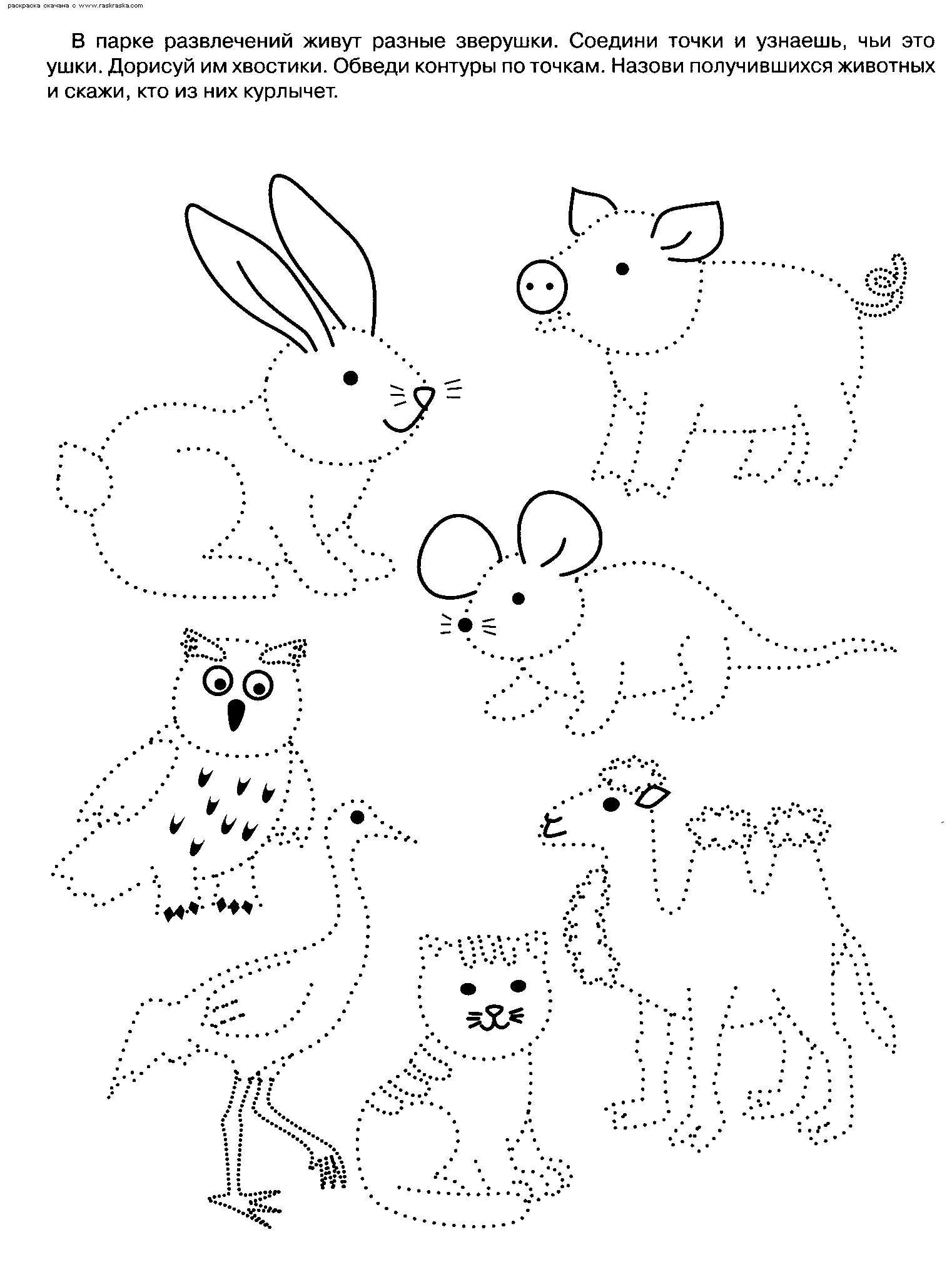 Розмальовка для дітей "Світ тварин". Раскраска Дитяча розфарбування світ тварин, сова, свиня, заєць, миша, верблюд і кіт, з'єднай по крапках і розфарбуй завантажити бесплатно онлайн
