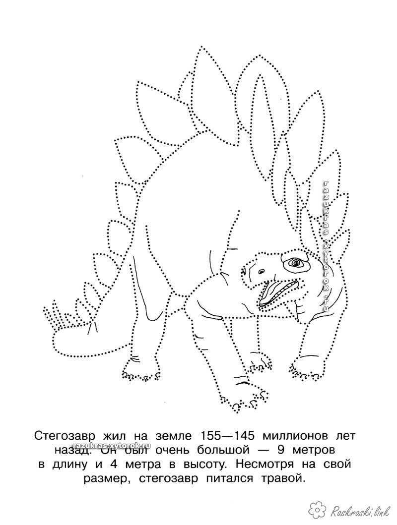 Розмальовка для дітей "Стегозавр". Раскраска Дитяча розфарбування, з'єднай і розфарбуй стегозавра завантажити бесплатно онлайн
