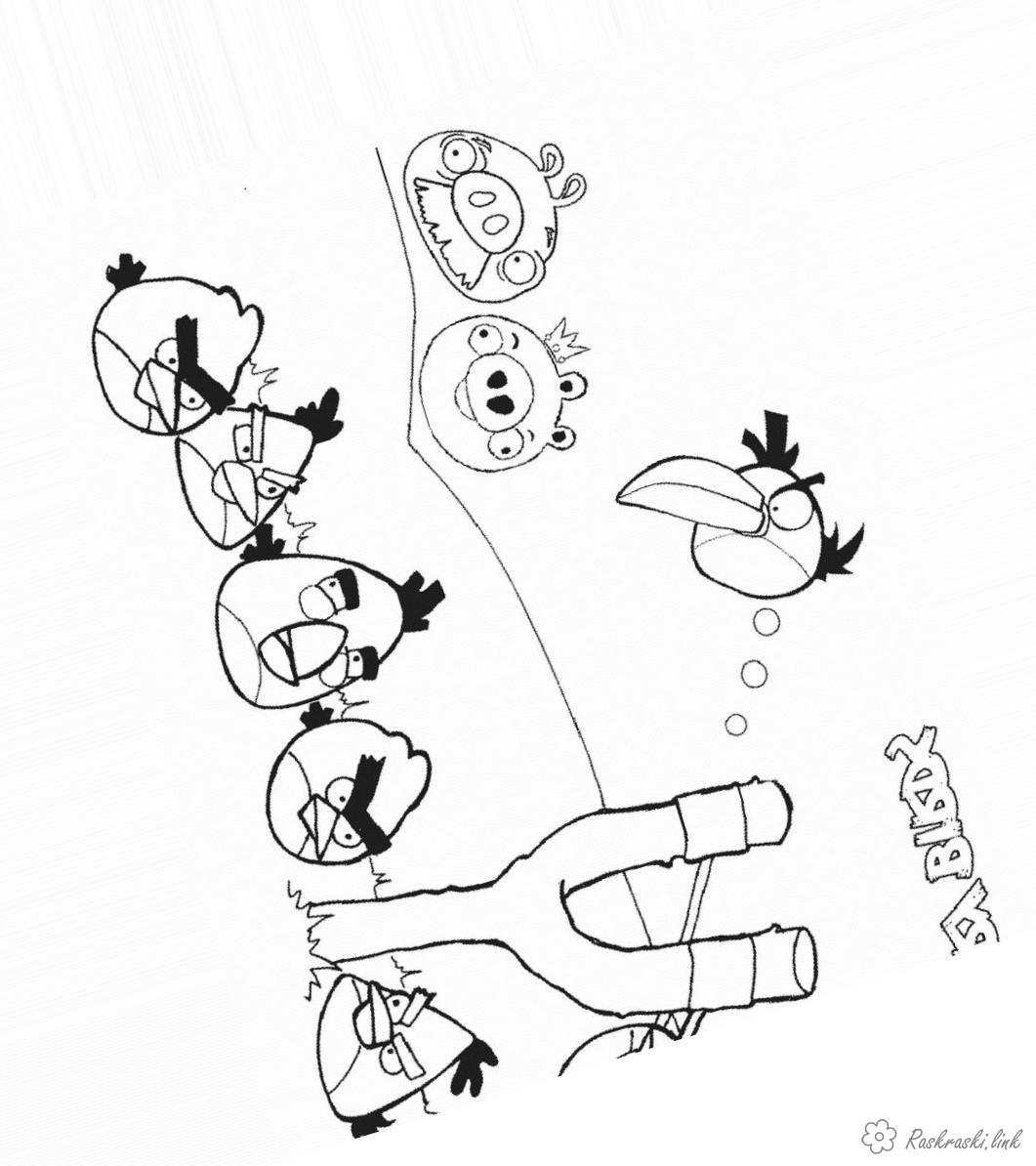 Злі пташки з рогаткою. Раскраска Розмальовка злі пташки з рогаткою завантажити бесплатно онлайн