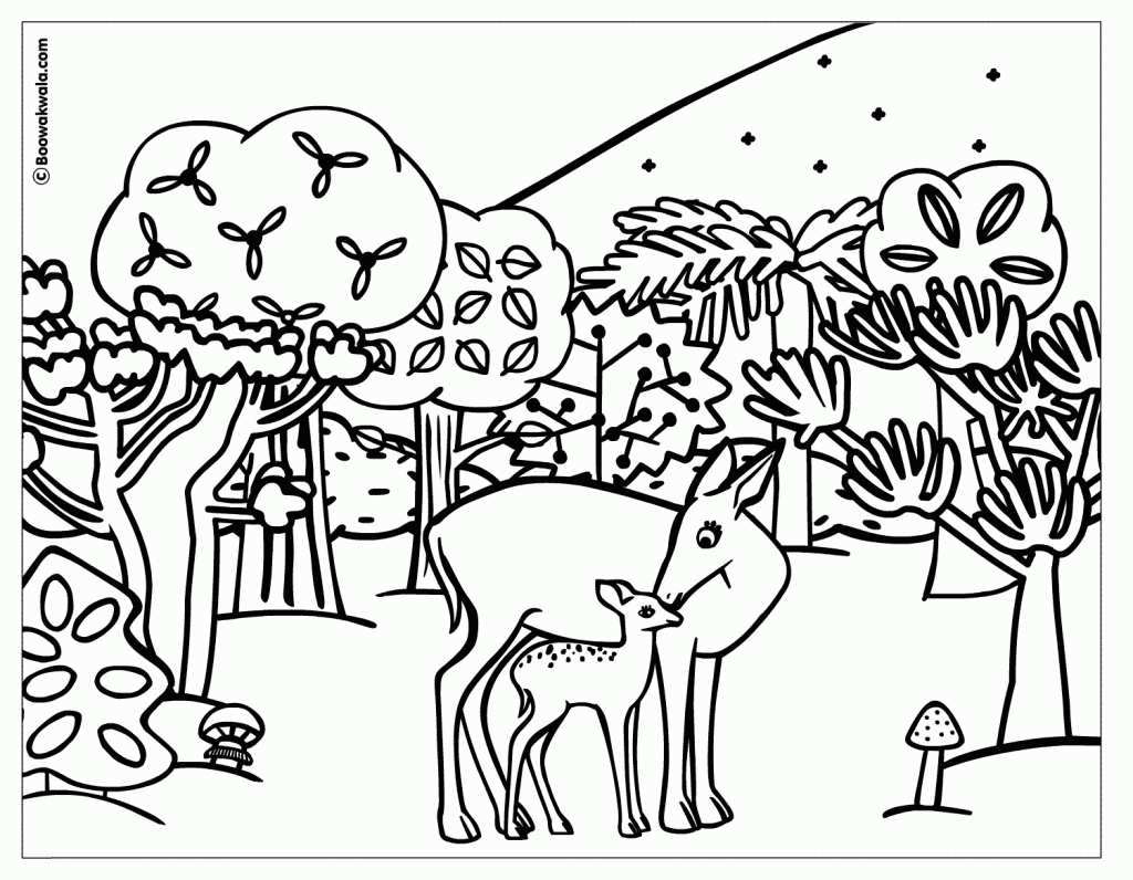 Розмальовка олені в лісі. Раскраска розфарбування, для дітей, олені в лісі, оленятко завантажити бесплатно онлайн