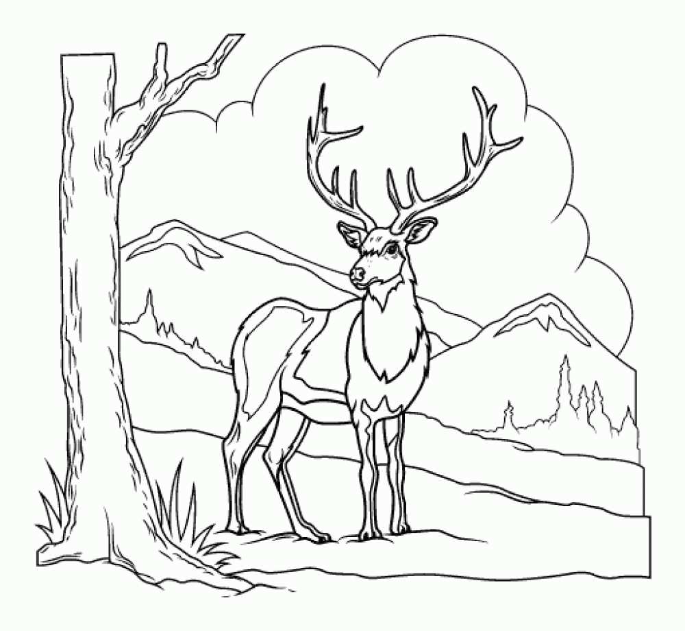 Розмальовка рогата олень на тлі гір. Раскраска Розмальовка тварини, природа, дикі тварини, лісові тварини, розфарбування олень, рогата олень, гори завантажити бесплатно онлайн